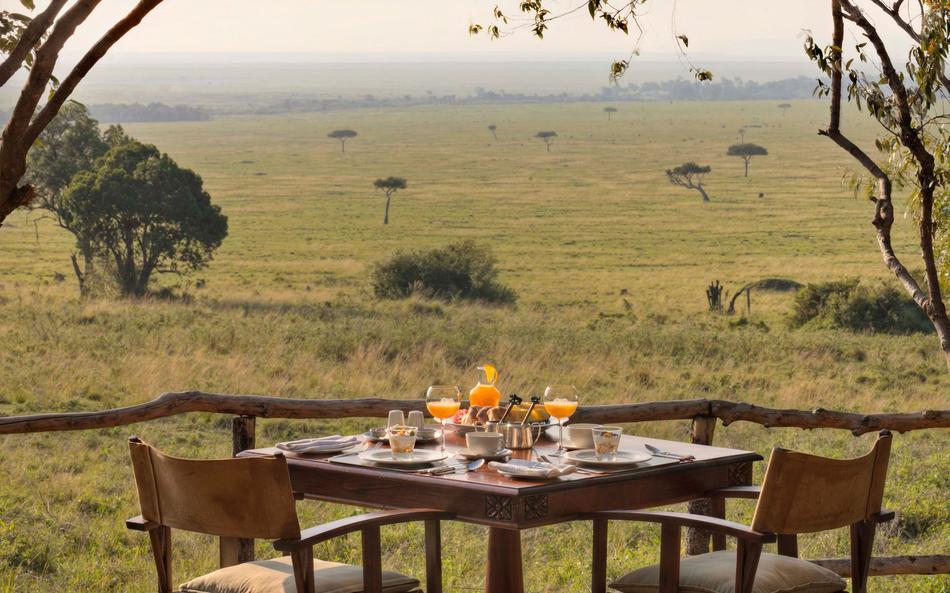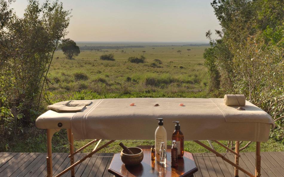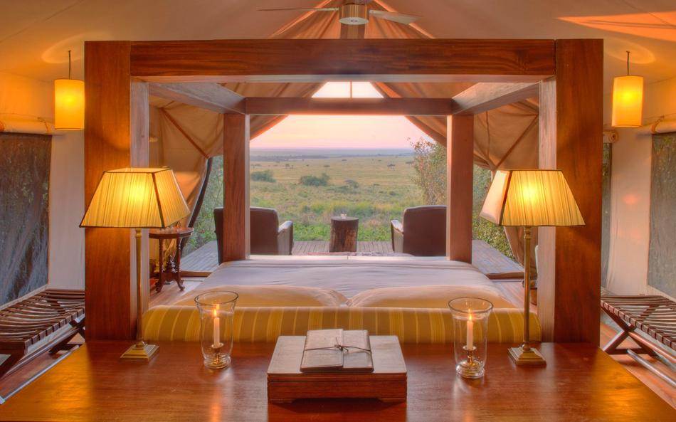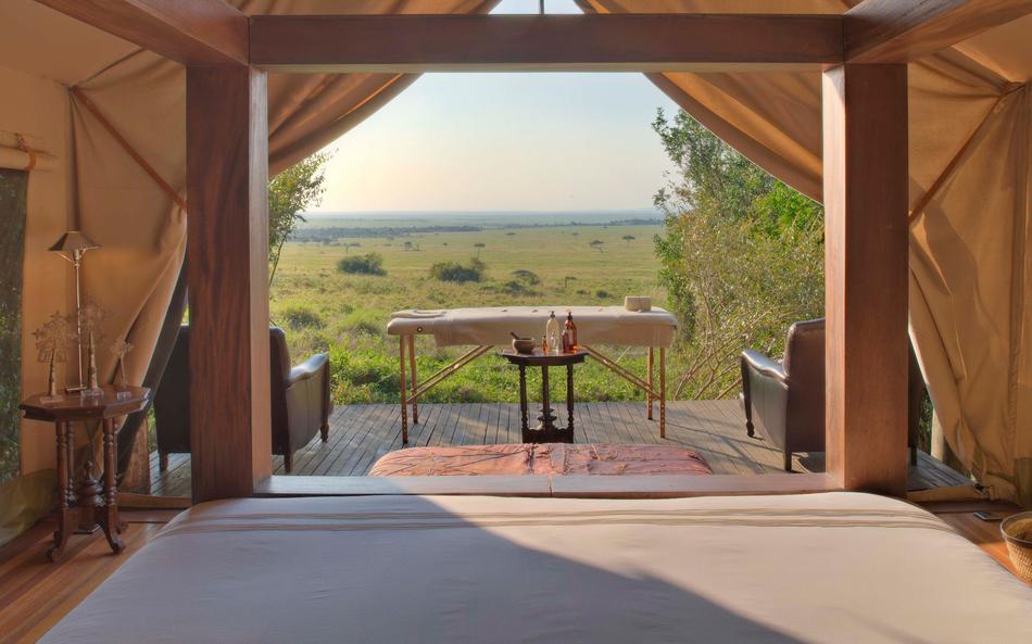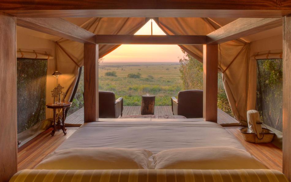 Verdant branches that open up onto an expansive panorama provide endless views of the Masai Mara as soon as you open your eyes in your vast wooden bed.