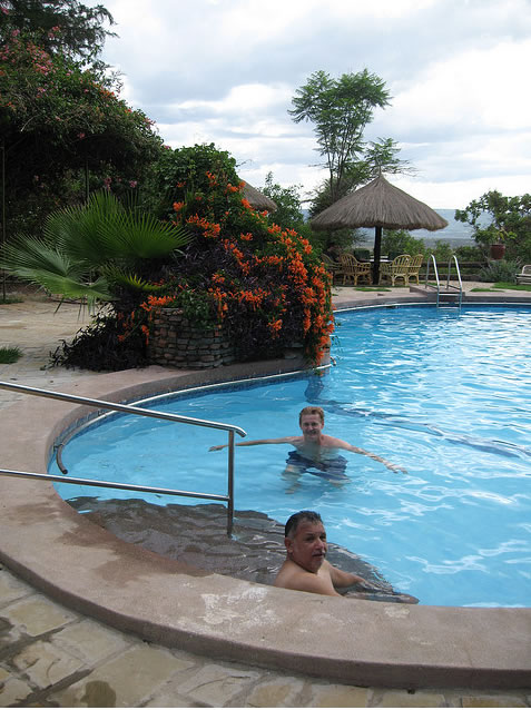 The lodge provides a direct-dial telephone, satellite television and video options. Rooms are also equipped with drinking water in flasks and bottled water is available for sale The guest shop is stocked with a wide selection of curios, gift items, clothing, film and toiletries. The lodge has a freeform, fresh-water pool which offers spectacular views over the valley.