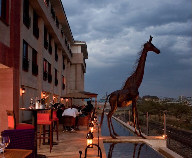 Located just off Mombasa road Ole-Sereni is the only hotel bordering a National Game Park. The title of the hotel is taken from the Maasai name for the area meaning ‘place of tranquility’. Ole-Sereni captures the essence of Nairobi, which is the only city in the world that boasts a natural game park within its precincts. The hotel offers its guests views of animals in their natural surroundings at the waterhole in the park from the restaurants, bar, swimming pool and other parts of the hotel.